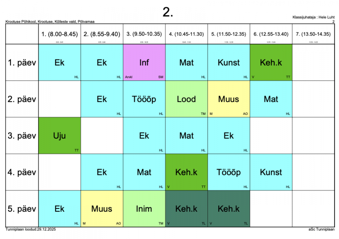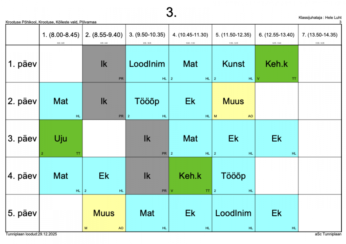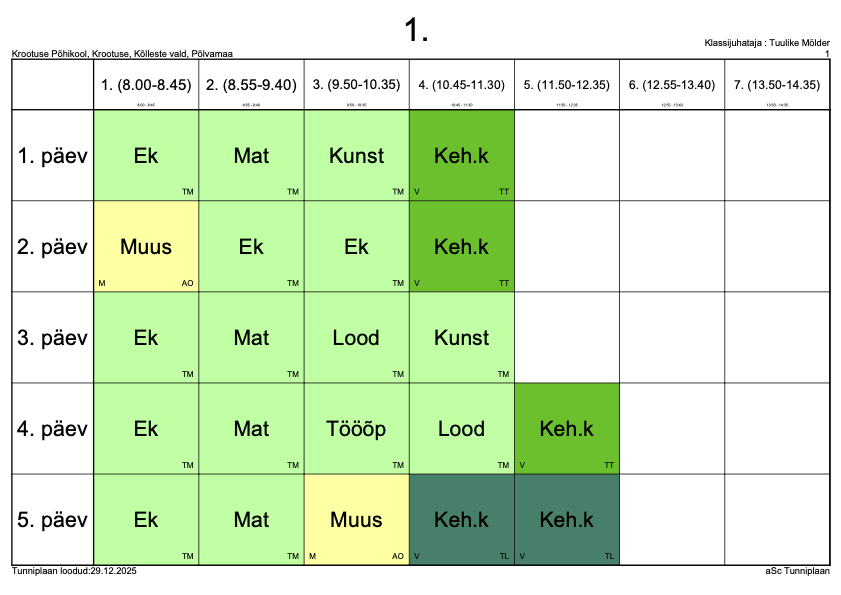 Kokkuvõtlik tunniplaan